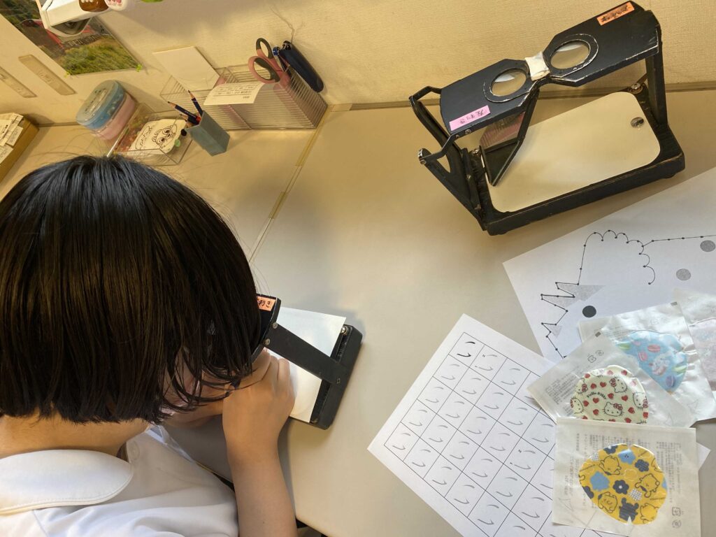 例えば、遠視や強い乱視があっても眼鏡をかけていないお子さんがいますが、鉛筆で文字を書いても筆圧が薄いです。でも処方された眼鏡をきちんとかけて訓練し始めると、筆圧がしっかりしてくる。文字の止め、はね、払いが的確になり、マス目にきちんと書き込めるようになってくる。そういうことがお子さん自身、楽しくなってくるんですよね。